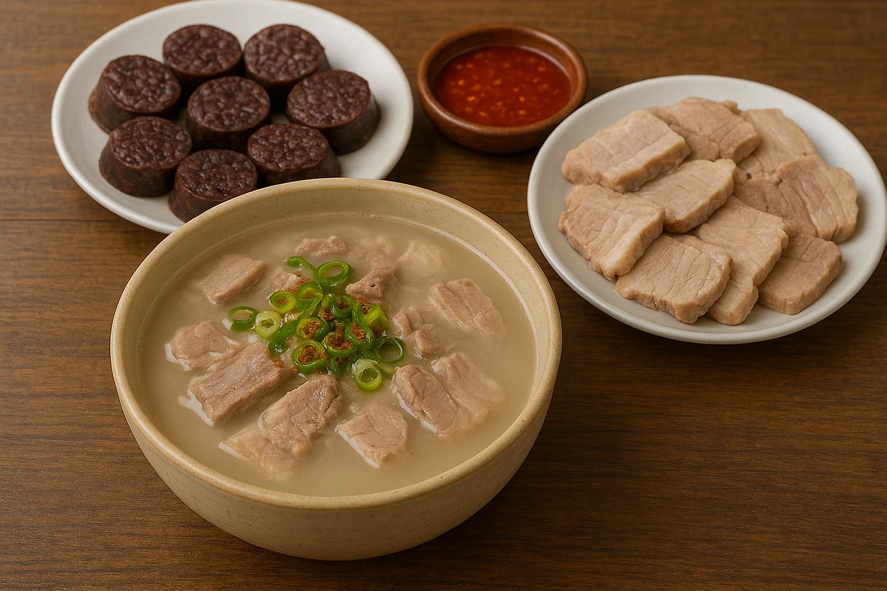 밀면엔 찐만두, 자장면엔 군만두, 칼국수엔 김밥 등 각 요리엔 영혼의 단짝, 시그니쳐 사이드 메뉴가 하나씩 존재하는데 국밥에도 이런 메뉴가 있다. 식당마다 모둠 순대, 맛보기 순대 등 일컫는 말이 조금씩 차이가 있긴 하지만 그건 바로 순대다. 대체로 우리가 분식에서 먹는 그 검은색 순대가 나오지만 여기에도 색다름을 추구하는 집도 있다. 실제로 종류가 다른 색색의 다채로운 순대가 나오는 곳도 있고 수제 순대로 한입에 넣기도 힘들 정도의 크기를 자랑하는 곳도 있다. 또 암뽕이라고 해서 겉피가 두툼한 내장으로 된 순대와 유사한 메뉴도 있었다.