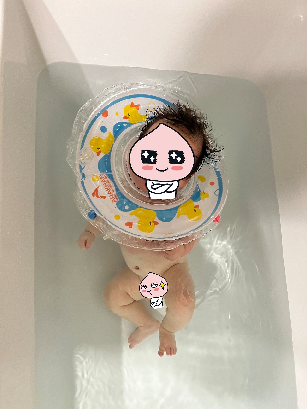 흑막들의 괴롭힘은 그것에서 그치지 않고 나를 물이 담겨 있는 곳에 넣어 버렸다. 갑자기 물속으로 들어온 나는 당황해서 바둥거렸다. 잠시 시간이 지나 어느 정도 당황스러움이 사라지자 나는 현재 상황을 인지할 수 있었다. 먼저 내가 들어온 물은 세상에 나오기 전 갇혀있었던 곳의 물과 비슷하게 따뜻했다. 하지만 그곳과 다른 점이 있다면 지금은 머리가 물속에 잠기지 않았다. 그것을 막아주는 것은 이 안으로 들어오기 전 흑막들이 나의 목에 걸었던 물체 때문이었다. 그것은 물 위를 둥둥 떴고 그 물체에 내 머리가 걸려 나도 물에 뜰 수 있었다.