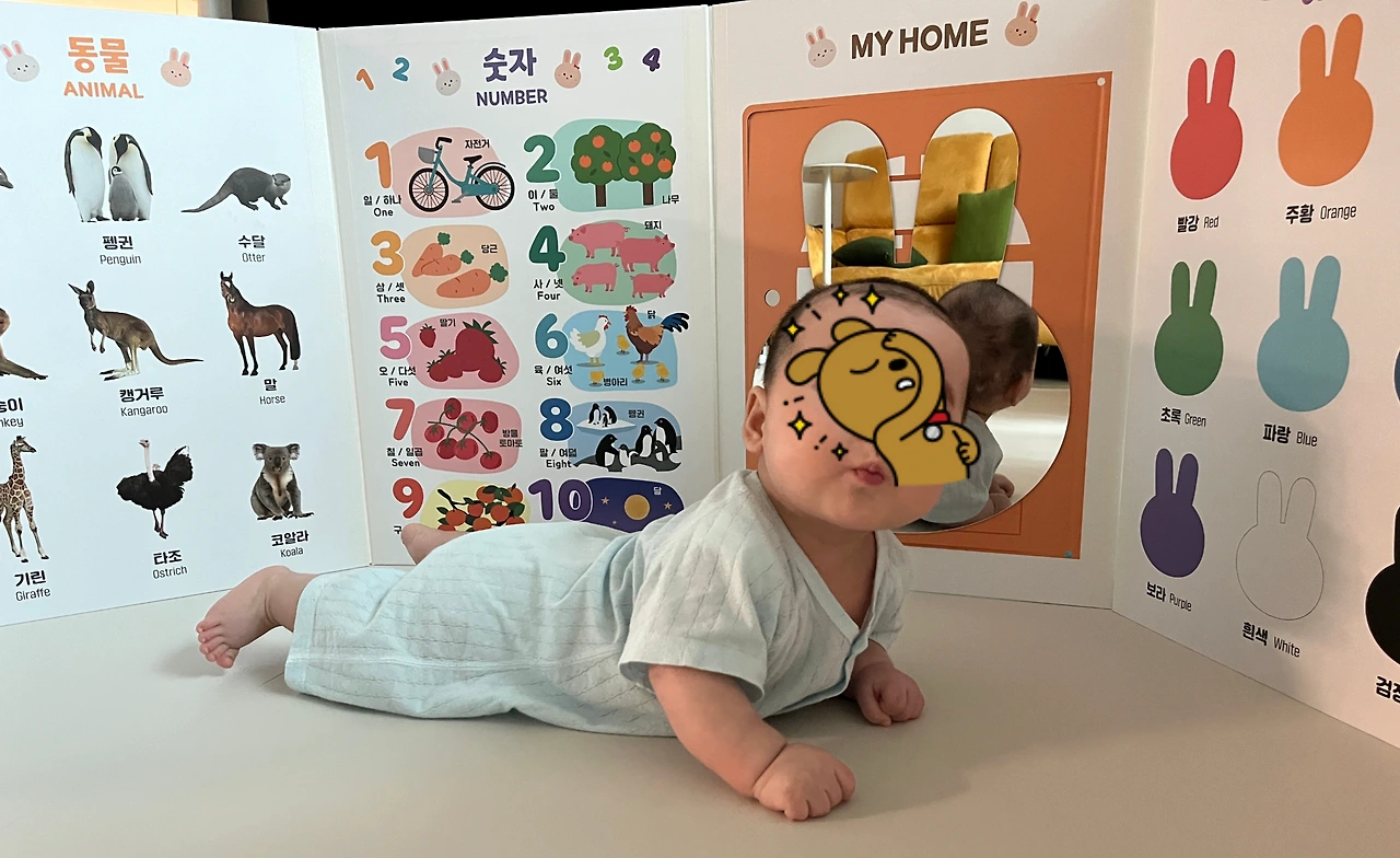 오늘은 누군가에게 칭찬받고 싶은 날이다. 드디어 내가 놀랍게도 스스로 이동했다. 이 이동은 이때까지 해온 나의 모든 노력의 결정이었다. 터미 타임으로 고통받으며 단련한 머리 들기, 딸랑이로 단련한 팔, 온몸을 사용해 성공한 뒤집기가 모두 모여 하나의 동작을 만들었다. 그건 바로 '배밀이'. 다른 이에게는 하찮게 보일지도 모른다. 흑막들처럼 서서 성큼성큼 가는 것도 아니고 배를 바닥에 대고 팔로 힘겹게 밀고 나가는, 나의 머리 크기도 못 미치게 내 작은 손 정도의 이동이다. 하지만 이것은 내가 스스로 기존에 있던 자리에서 다른 곳으로 옮겨간 첫 행동이다. 비록 지금은 거의 알아차리기 어려울 정도의 거리지만 한 손이 두 손이 되고 내 머리가 되고 언젠가는 내 몸길이만큼 갈 수 있을 것이다. '누가 어서 빨리 칭찬해죠.'