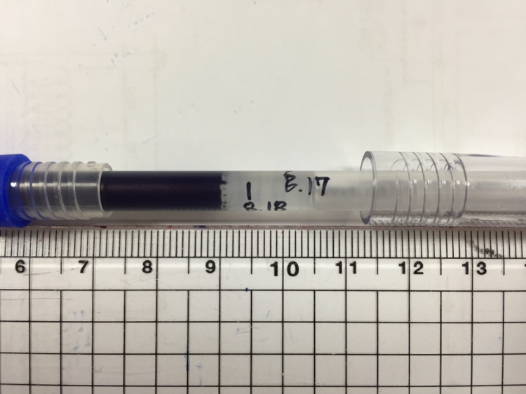 얼마나 쓰는지 확인해 보려고 8월 17일 아침에 잉크 끝을 표시하고 8월 18일 아침에 표시했다.