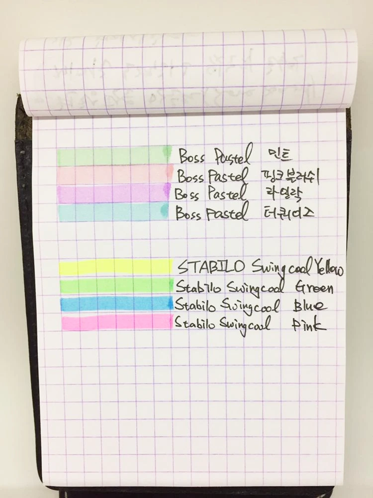 프릭션 소프트 형광펜이나 마일드 라이너 형광펜의 색감을 좋아하는데