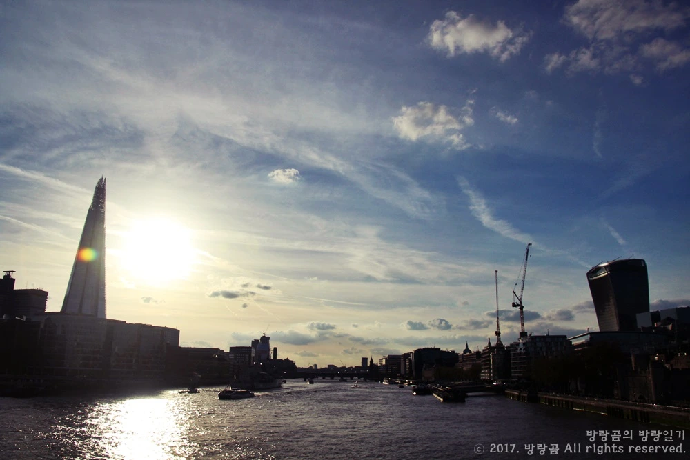 타워 브릿지는 어디에서 봐도 멋있지만 내가 추천하는 장소는 바로 옆에 있는 런던 브릿지(London Bridge)이다. 런던 브릿지 위에서 바라보는 템즈강과 어우러진 타워 브릿지의 모습은 정말 웅장하다. 배를 타고 타우 브릿지를 지나는 사람들에게 런던으로 어서 들어오라고, 환영한다고 이야기하는 것처럼 보였다.