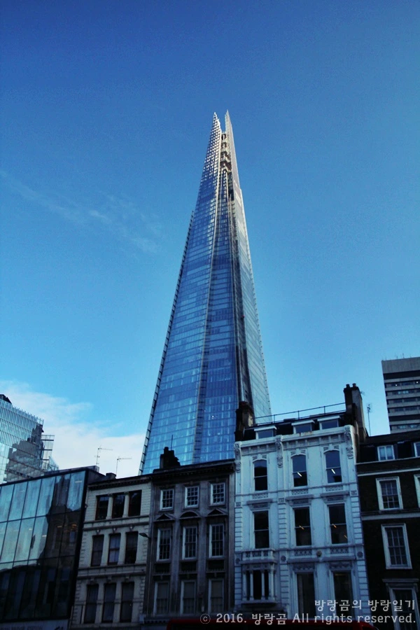 런던이 세계에서 가장 많은 관광객이 찾는 도시 중 하나이긴 하지만, 런던에서 초고층 건물은 이제껏 찾아볼 수 없었다. 72층, 약 309m 높이의 이 건물은 런던의 다른 건물과 비교가 안될 정도로 높다. 마치 우리나라의 롯데타워와 비슷한데, 그렇기 때문에 런던 도심 지역 어디에서나 더 샤드 건물이 보인다.