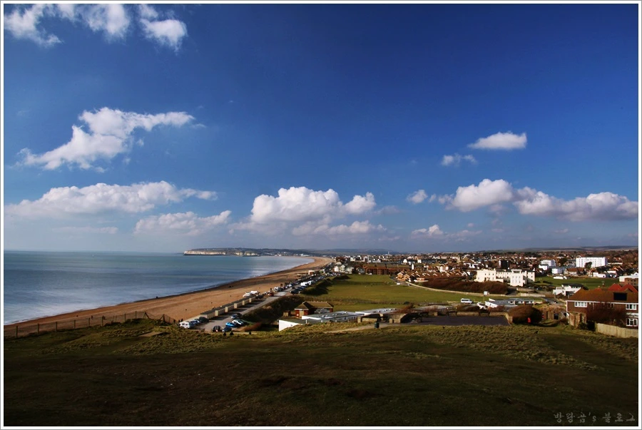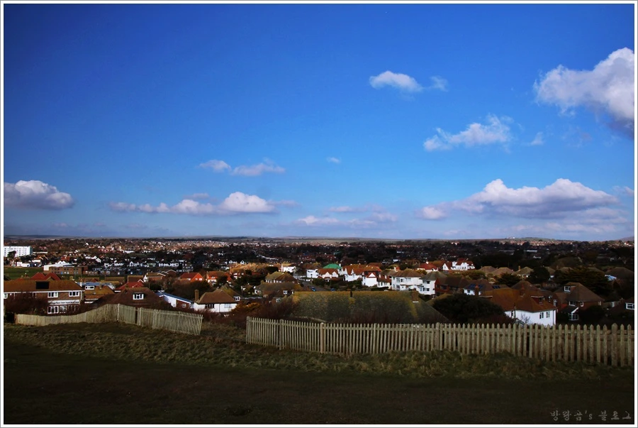 시포드의 또 다른 매력은 마을 옆에 있는 언덕으로 올라가야 볼 수 있다. 우리는 해변을 벗어나 언덕을 올라갔다. 그곳에 오르면 시포드의 마을 전경과 아름다운 해변이 한 눈에 들어온다. 멀리서 바라보는 해변의 모습은 우리나라의 그것과 별반 차이가 없었는데, 그 뒤로 보이는 마을의 모습은 확연히 달랐다. 작은 동네다 보니까 높은 건물이 없고 자연친화적인 색깔을 활용한 영국 특유의 주택 모습을 볼 수 있었다.
