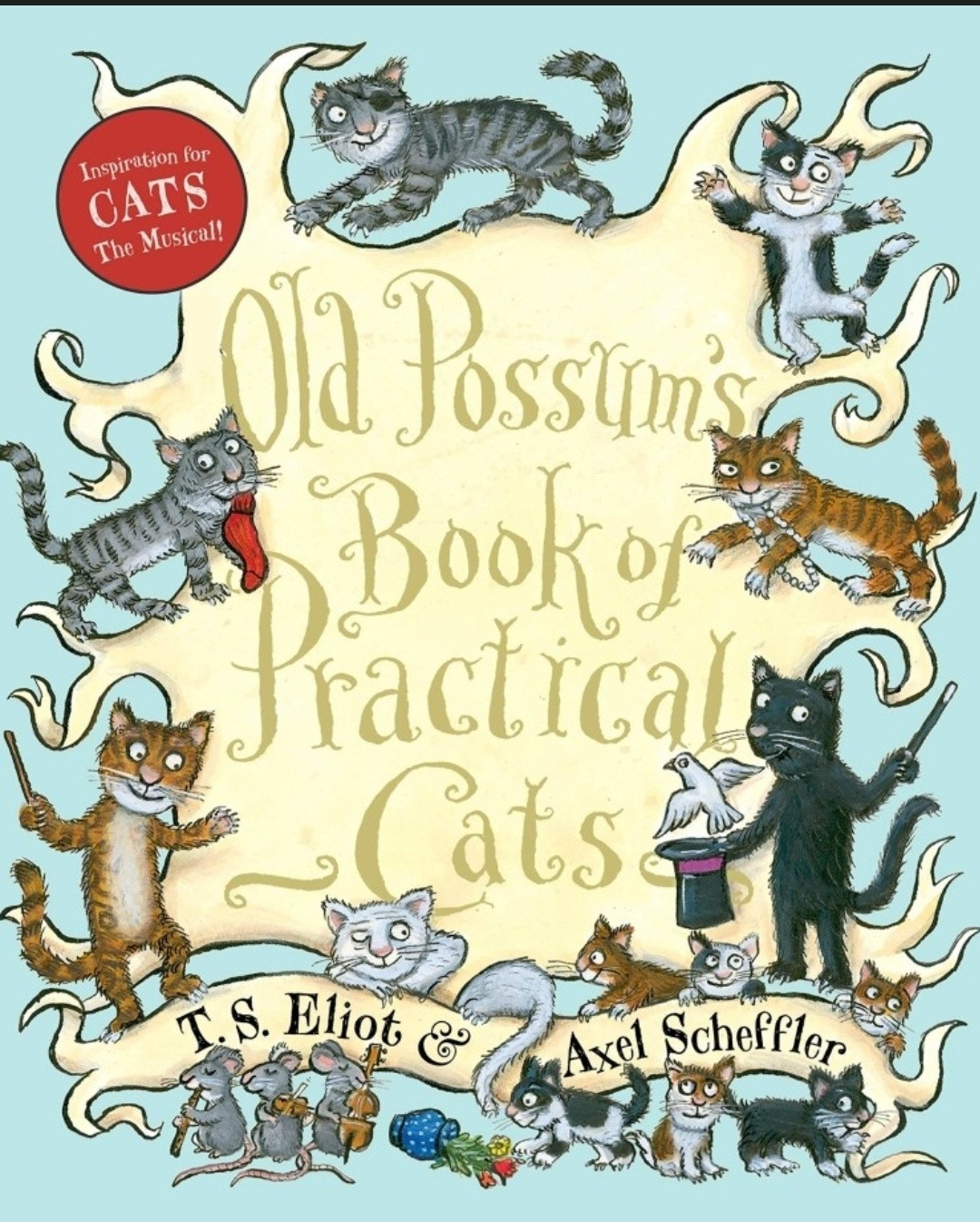 20세기를 대표하는 영국의 시인 T.S, 엘리엇이 고양이들의 모습을 보고 사랑에 빠졌으니 그 모습과 행동을 관찰하여 떠오르는 고양이의 세계를 ‘주머니쥐 할아버지’라는 별명으로 시로 써서 편지를 보낸다. 그 글을 모아 직접 그린 표지로 출간한 책이 Old Possum's Book of Practical Cats (1939), 『주머니쥐 할아버지가 들려주는 지혜로운 고양이』이다. 그리고 그 시를 읽고 영감을 받은 영국의 뮤지컬 작곡가 앤드류 로이드 웨버가 만든 뮤지컬이 바로 “캣츠”이다. 이 책은 캣츠의 원작이라고 할 수 있다.