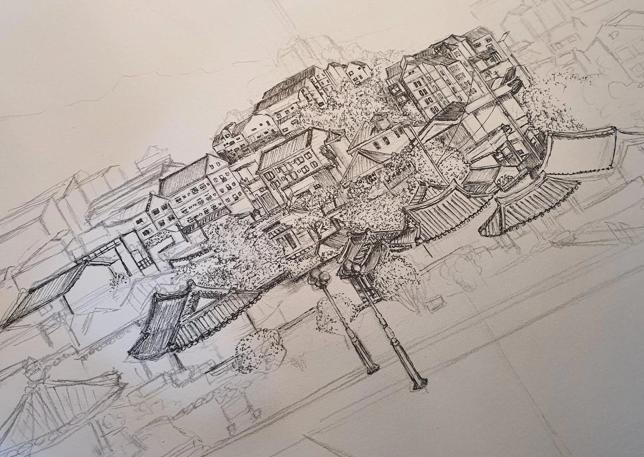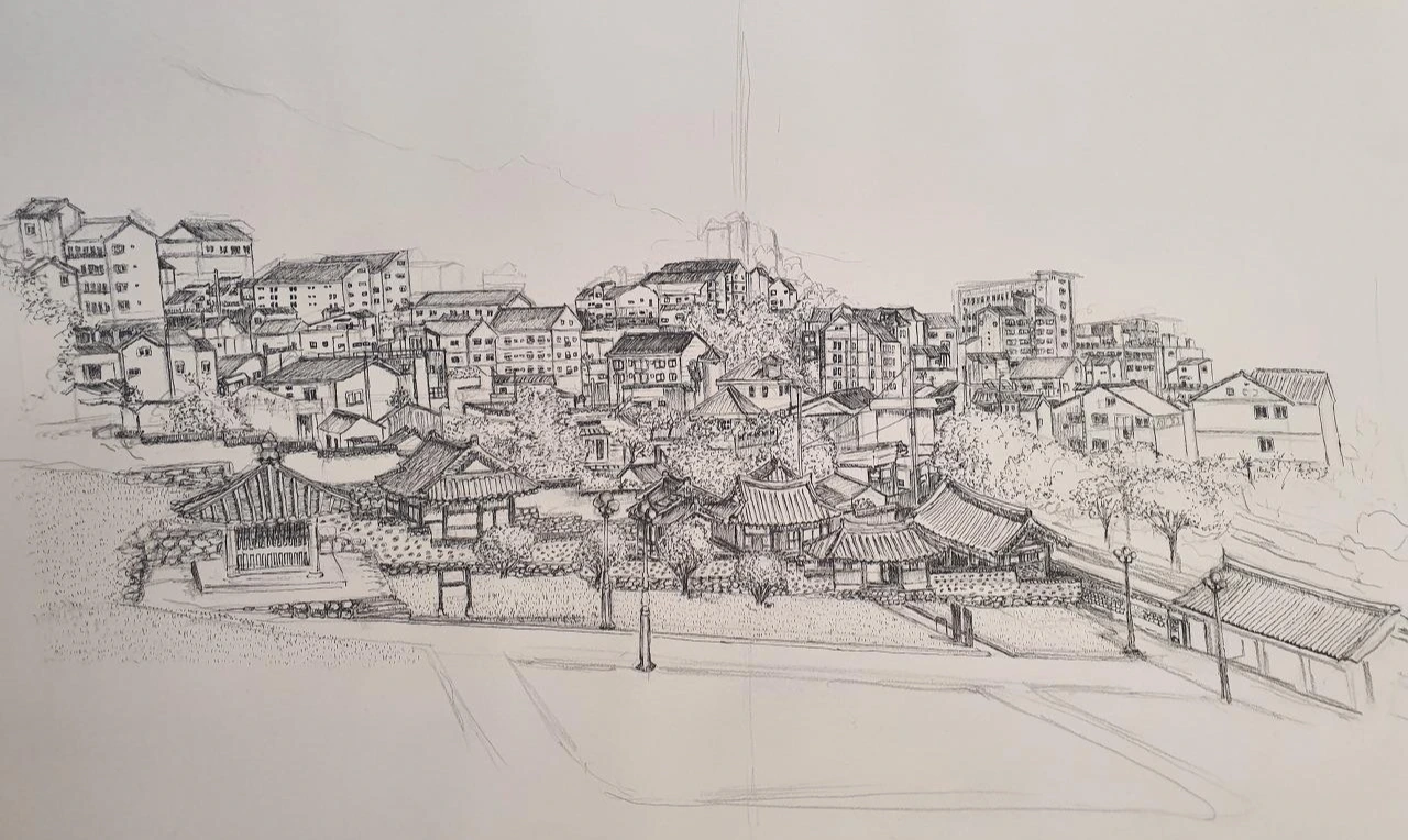 아래에는 아주 먼 옛날 지어진 한옥과 같은 건축물에서부터 중간에는 익숙한 주택들이, 그리고 그 위에는 높은 빌딩이나 아파트가 꼿꼿하게 서 있었다. 과거에서부터 현재 그리고 미래까지 이어지는 모든 모습들이 담겨있었다. 바라봤던 순간 형용할 수 없는 묘한 감정이 느껴졌고 표현 못할 감동이 벅차올랐다. 광활하게 펼쳐진 모습에 쌓여있었던 스트레스가 풀리는 느낌이었고 중간중간 자기 자리를 잡으며 주위와 조화롭게 있는 모습에서 안정감과 따스함이 느껴졌다.