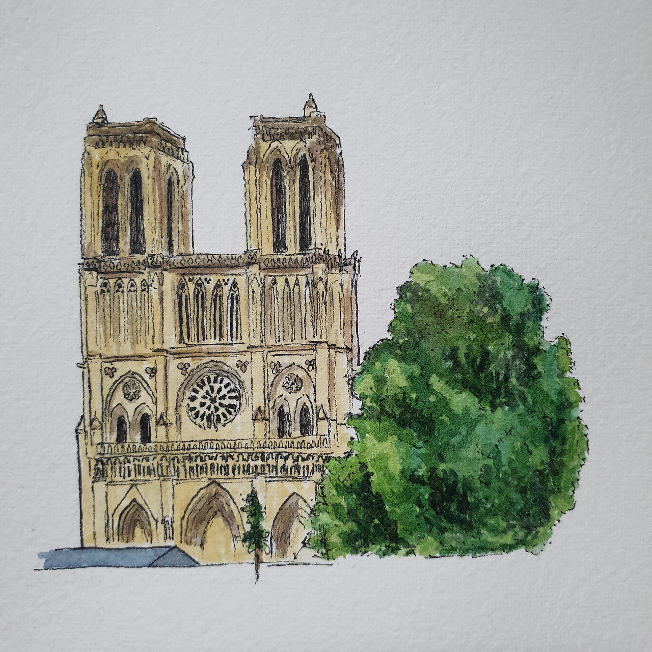 확실히 그림 그리는 면적이 상대적으로 크지 않다 보니 나름 빠르게 진행되었다. 간단히 연필로 스케치한 다음, 스테들러의 피그먼트 라이너 0.05mm 펜으로 윤곽을 선명히 잡아나간다. 수채화를 할 것이므로 건물 내 공백에 부담 가질 필요는 없다. 붓으로 색을 다채롭게 채워나갈 수 있으니.