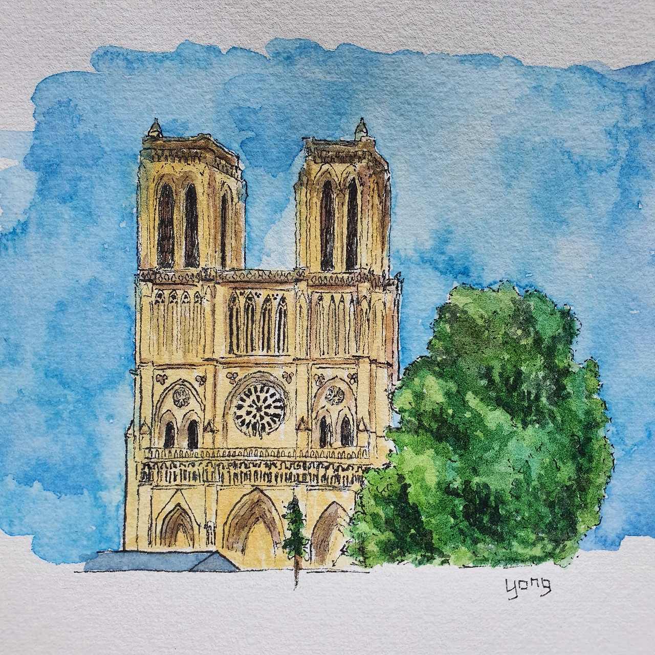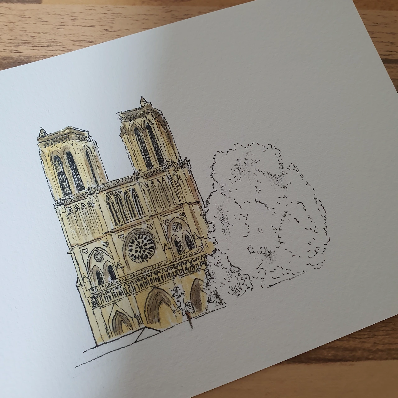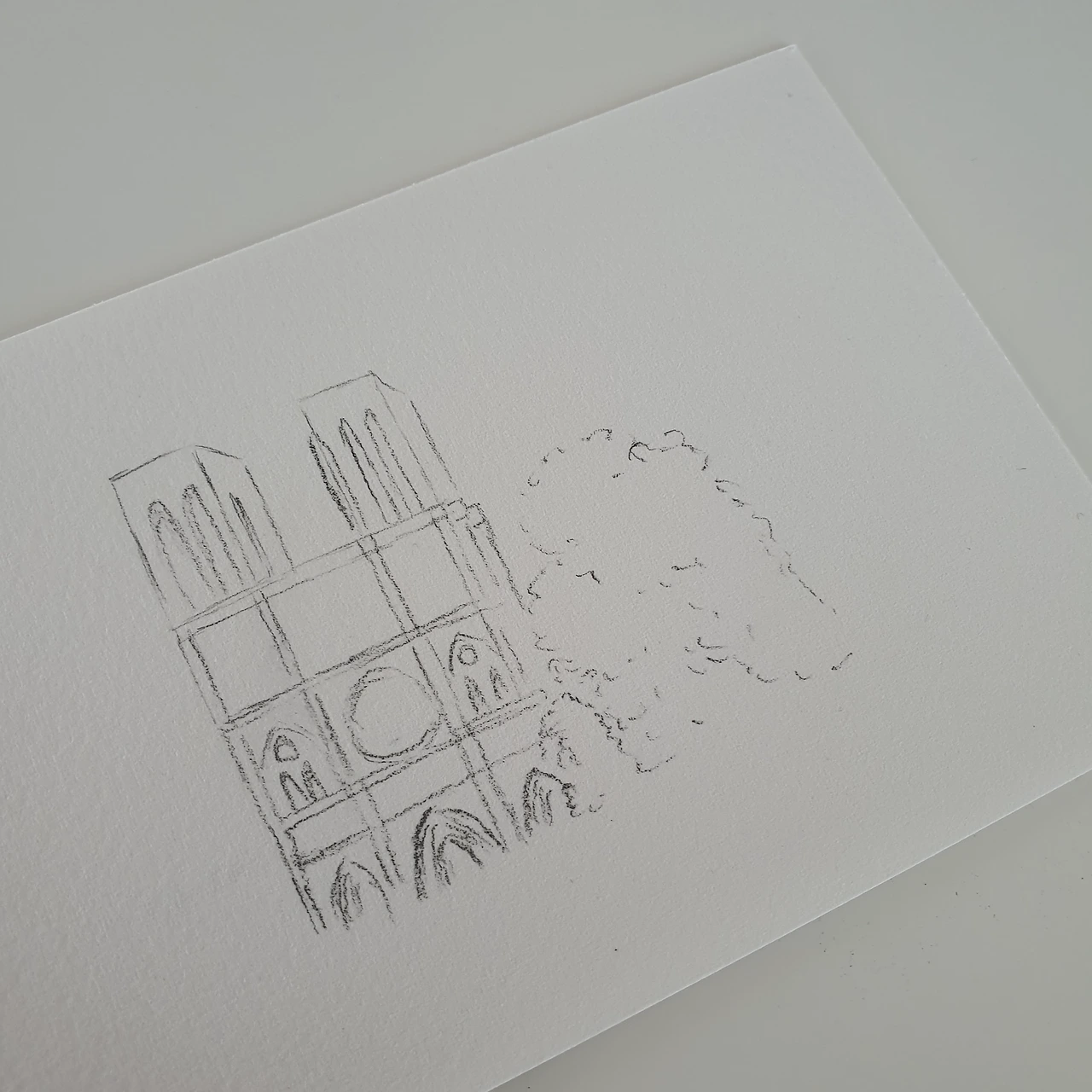 엽서 정도의 크기(10.5 X 15.5cm) 아르쉬 중묵 종이를 꺼내놓고 그림 대상 선정에 들어간다. 2019년 8월 말에 영국과 프랑스를 여행하며 담은 사진을 보다, 파리를 담은 풍경들을 보고는 혼자 거닐며 열심히 돌아다녔던 추억에 잠시 잠겼다.