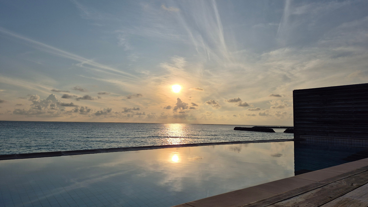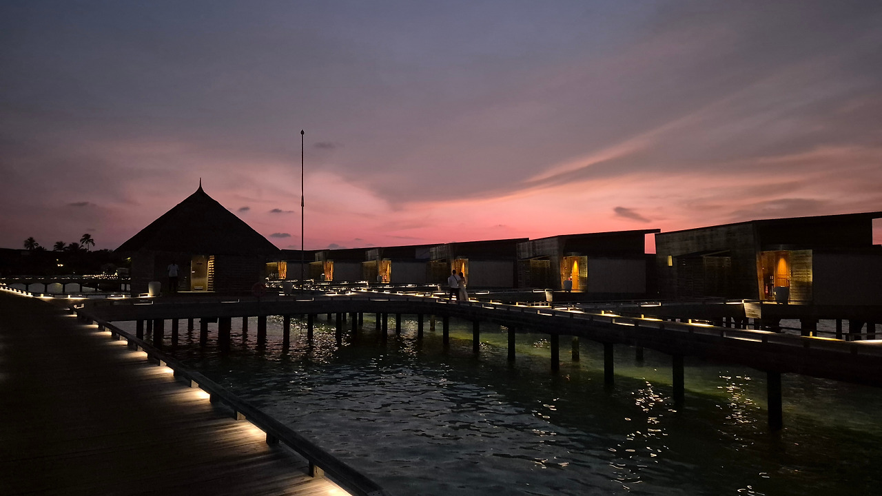 식사와 물놀이를 번갈아 계속하다 보면 어느덧 해가 지는 시간에 이른다. 일몰의 모습들은 리조트 내에 어디에서든 정말 아름다웠다. 비치빌라에서 머물 때 해변이 있는 바닷가에서 튜브를 타고 누워 바라본 일몰의 모습, 워터 빌라에 오가며 봤었던 파스텔 톤의 따뜻한 일몰의 모습 등 잊히지 않는다. 사진으로 혹은 영상으로 담아왔지만 실제로 바라본 느낌을 모두 담을 순 없다. 숙소에서 나와 열심히 일몰 사진을 찍는데 리조트 직원도 가는 길에 멈춰서 사진을 찍는 모습을 보고는 아무리 자주 보는 풍경이라도 얼마나 예쁜 모습일까 하며 재밌어서 속으로 웃었다.