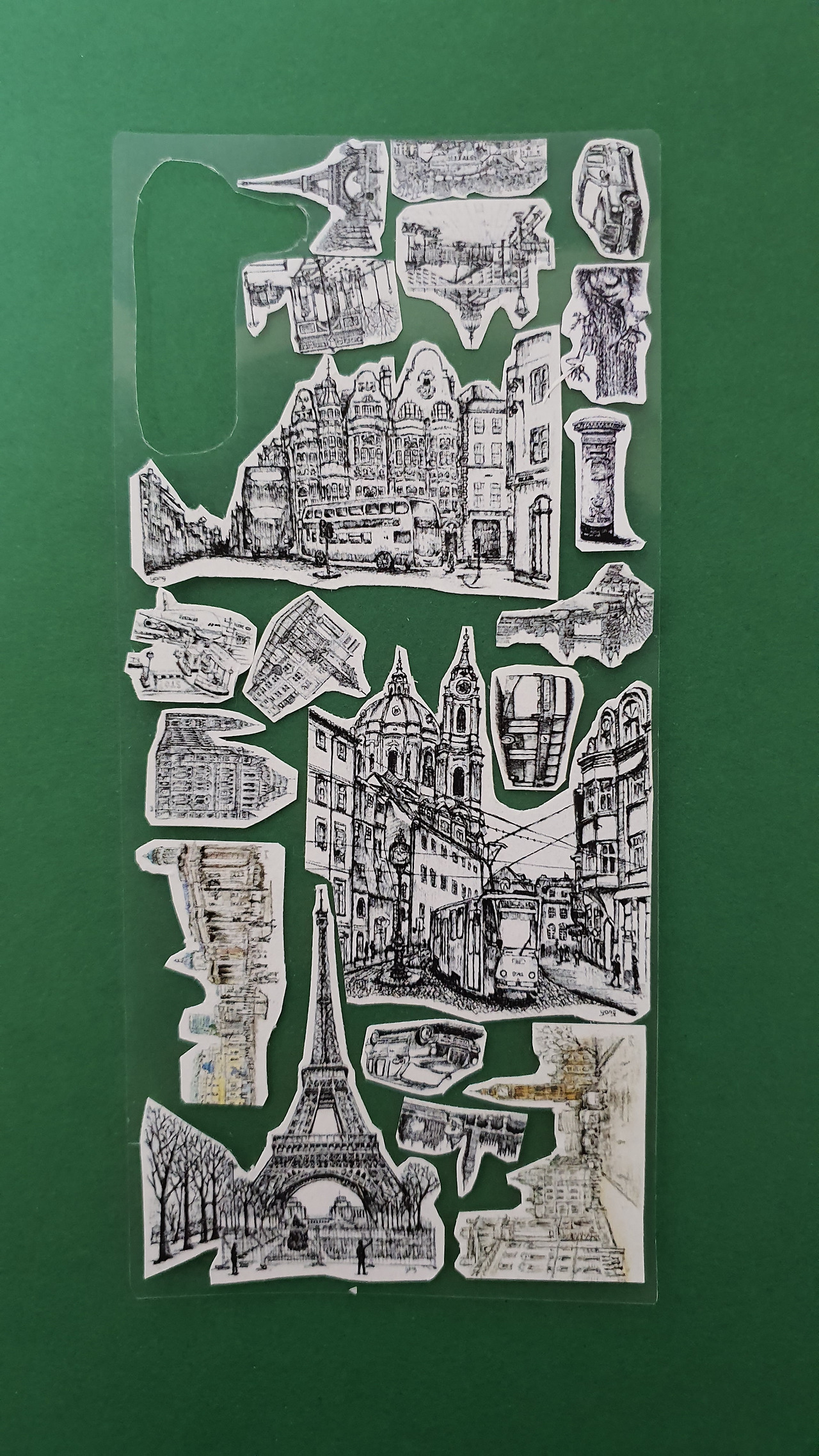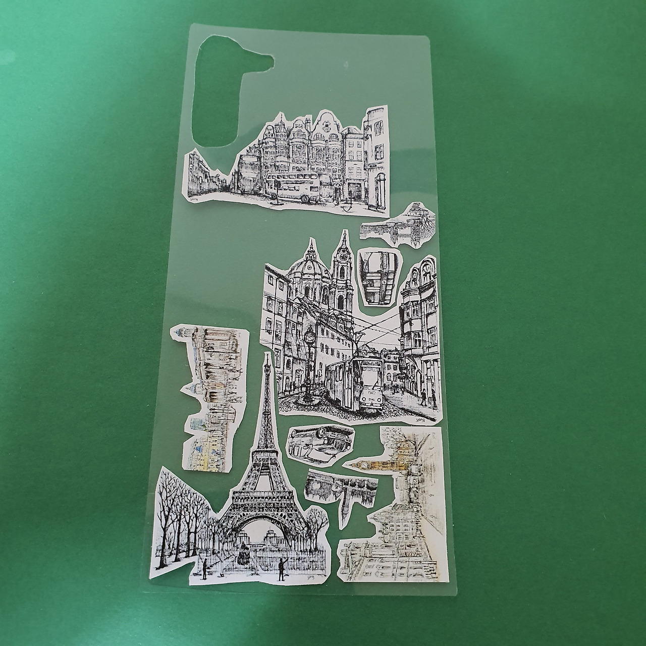 그렇게 하나하나 자른 스티커들을 붙여야 하는데 빽빽하게 채우고 싶어서 자르는 것마다 어디 위치에 놓으면 빈틈이 없이 채울 수 있을까 생각했다. 테트리스 게임하듯 이리저리 각을 재보면서 붙여나갔다.