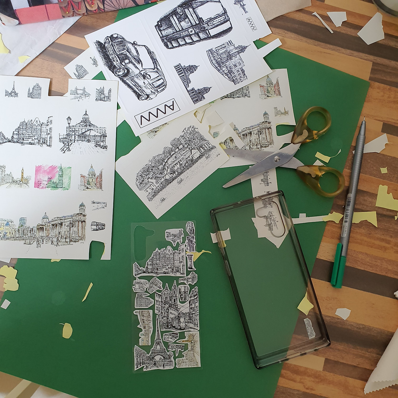 투명 파일이 완성되었다면 반은 했다라기보다 이제 시작이다. '스티커를 그림에 맞춰 자르기'를 해야 한다. 그림의 형태의 맞게 스티커가 제작된 것이 아니므로 일일이 가위로 선을 맞춰 잘라야 한다. 아래 사진처럼. 지나서 하는 말이지만 손이 정말 많이 갔다. 무엇이든 쉬운 건 없나 보다.