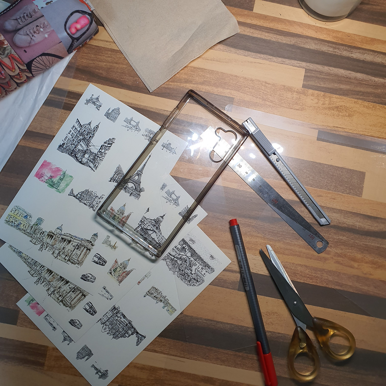 어렸을 때 추억에 젖어 여담이 길었다. 중학생, 고등학생, 대학생이 돼가면서 점차 손으로 무언가를 만드는 것을 하지 못했다. 그나마 뒤늦게 드로잉을 하게 되었고, 아트마켓에 참여하면서 굿즈들에 관심을 갖고 제작했다. 주로 그림을 스캔한 걸로 제작되어 있던 굿즈에 접목하는 방식이라 그림을 그리는 드로잉 외 굿즈 자체로는 손이 덜 갔다. 문득 손으로 무언갈 만들어 보고 싶었는데, 늘 들고 다니는 스마트폰의 허전함을 채우고 싶어 졌다. 검은색 폰에 투명색 케이스다 보니 심심했다. 그렇게 '스마트폰 케이스 꾸미기'를 하게 되었다.