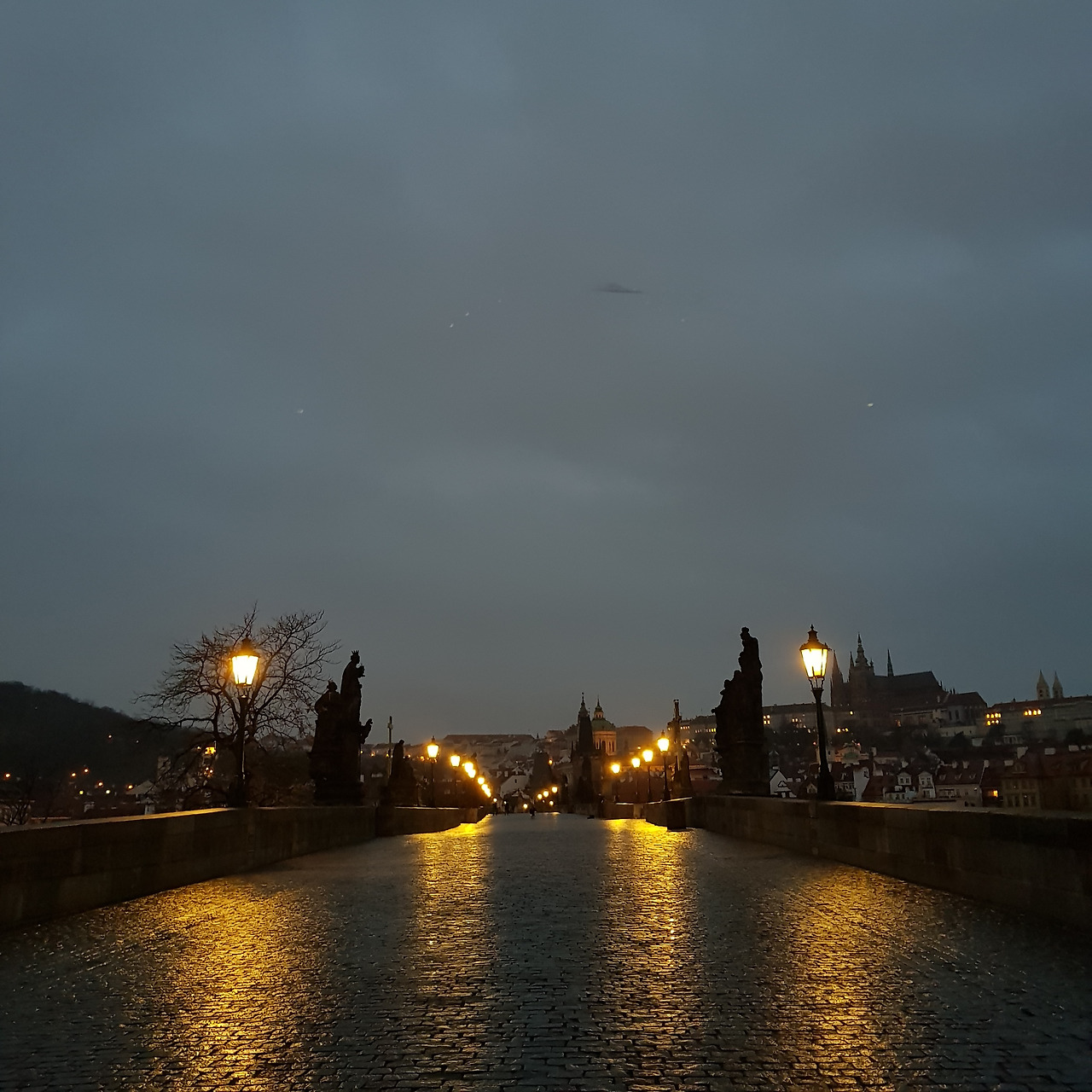 며칠 전 폰에 담긴 사진을 보다가 '새벽에 까를교 위에서 프라하성을 바라본 풍경 사진'을 봤다. 사진 속이 어떤 상황이 었는지 3년이 지난 지금도 선명한데, 새벽 아침 일찍 일어나 산책 겸 까를교로 나섰을 때였다. 전날 비가 와서 다리 위는 빗방울들을 머금고 있었고 가로등이 밝게 주위를 비출 때 불빛들이 아래 잔잔하게 담겨있었다. 마치 흐르는 강물 위에 반사된 것처럼.