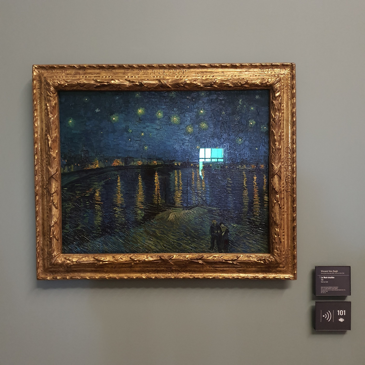 사진을 본 순간 작년 8월 파리 오르세 미술관에서 봤던 고흐의 '론 강의 별이 빛나는 밤'이 떠올랐다. 고흐의 여러 작품들 중에서도 이 그림이 나에게 제일 큰 감동으로 남아있는데, 강에 비치는 빛들을 잔잔하게 그리고 두터운 질감으로 표현해낸 것이 정말 아름답기 때문이다. 주위 어둠 속에서 별빛과 가로등 불빛이 주변을 은은하게 밝혀주어 조화로웠다. 어떻게 이렇게 그려낼 수 있지를 수십 번 되뇌었던 것 같다.