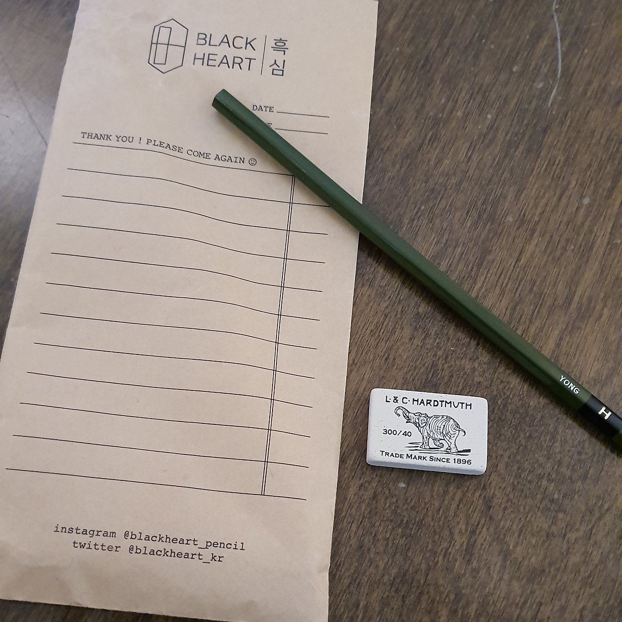 얼마 전 친한 형이 나에게 드로잉 연필과 지우개 선물을 해줬다. 그림 그리는 나에게는 더할 나위 없는 소중한 선물이었다. 더 인상이 깊었던 것은 연필에 내 이름에 포함된 'YONG'이라는 글자를 새겨주었다는 것이다. 보통 그림을 완성하고 나면 하단부에 'YONG'을 새겨놓는데 그것을 잘 기억해서 각인해줬다.