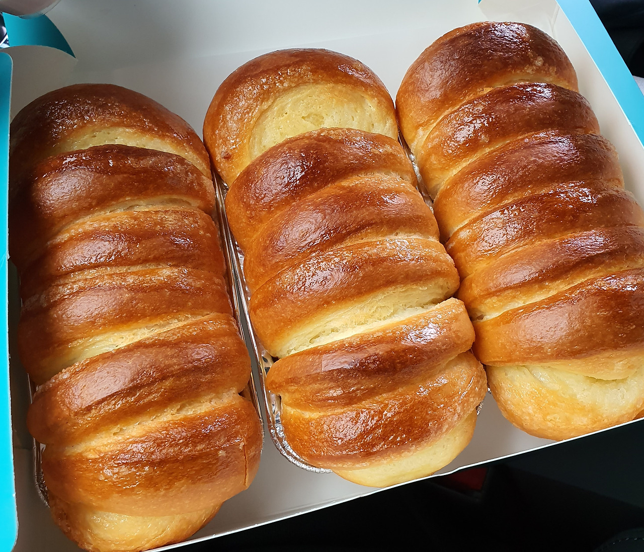 11시 딱 맞춰서 버터모닝에 도착해서 금액을 지불하고 빵을 수령했다. 갓 구워진 빵이라 그런지 가게 안에는 따스하고 달달한 빵 공기가 가득 채워져 기분이 좋아졌다. 차에 돌아오자마자 다 같이 따뜻하고 노릇노릇한 빵을 뜯어서 입으로 직행시켰다.