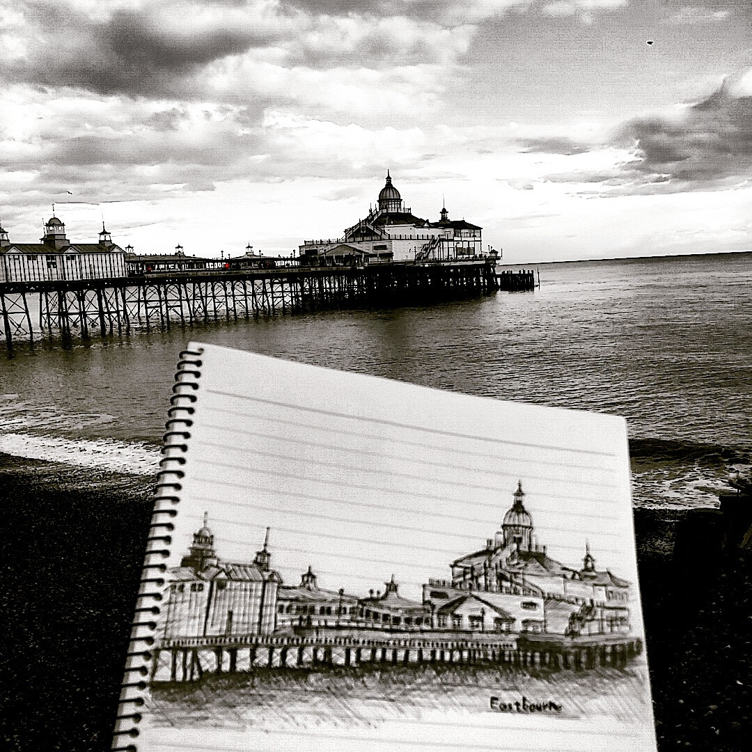 음식을 먹으면서 이스트본 피어를 그리고 싶어 졌다. 언제 또 올지 모르는 이스트본의 추억을 나만의 방법으로 남기고픈 마음이 컸기에. 피시 앤 칩스를 다 먹고 콜라를 마시면서 직접 찍은 사진을 일기장 노트에 그렸다. 그리는 중에 주위에 있던 외국인들이 나를 주목하고 얘기하는 것이 느껴졌다. 고개를 들어 그들을 응시하지 않았기 때문에 좋은 의미인지 안 좋은 의미였는지는 모르겠다. 그저 그림을 그리고 추억의 조각을 완성할 수 있다는 행복함만 떠오를 뿐이다.