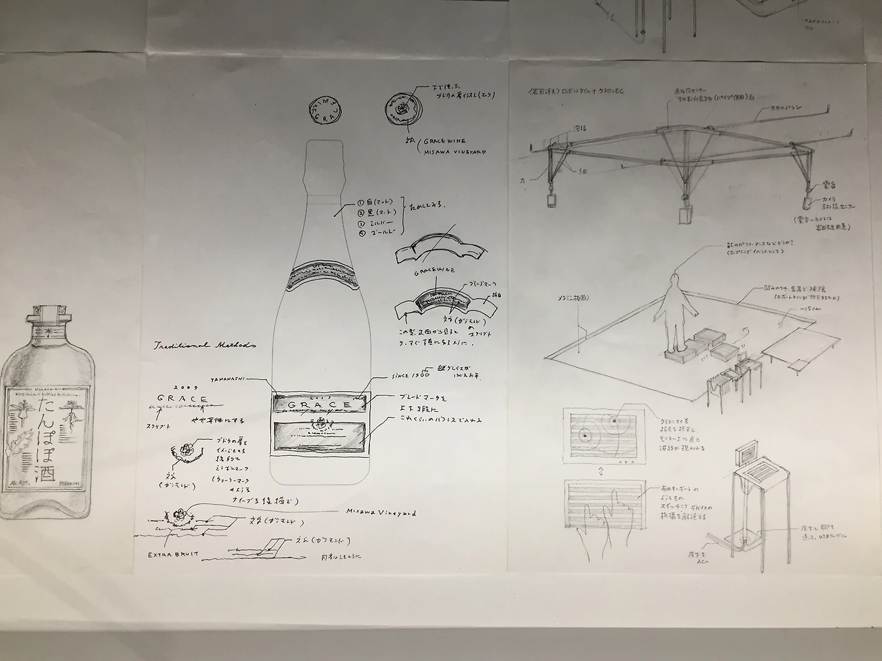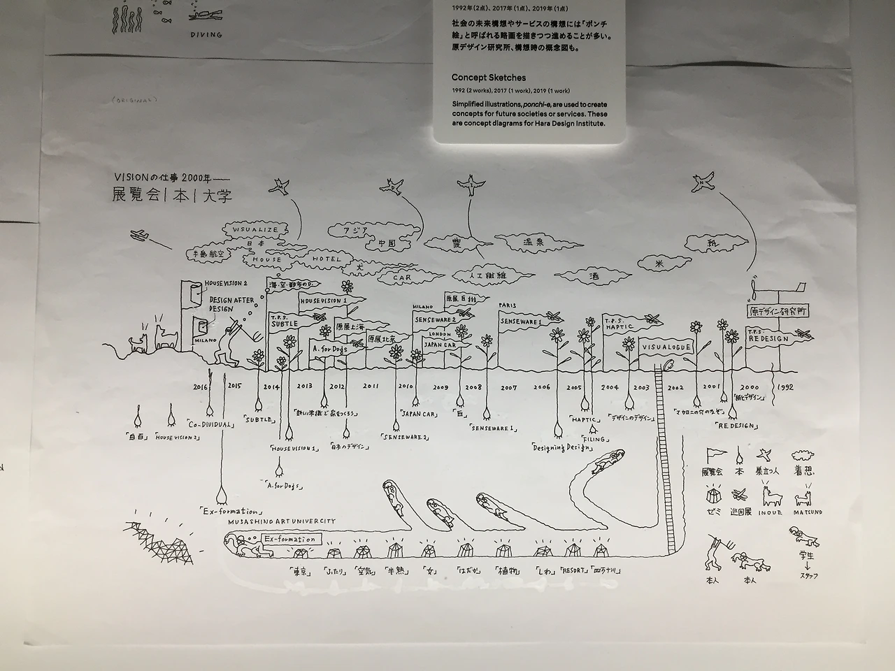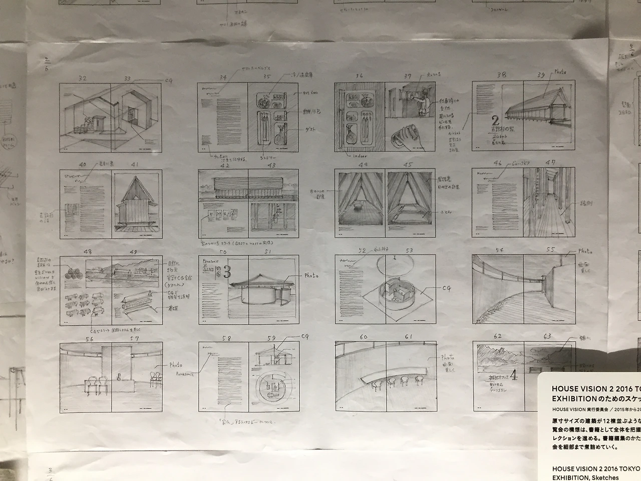 하라 켄야의 스케치들. 연필로 그린 스케치들이 참 사려 깊었다. 'House vision' 전시 도록을 위한 스케치에 대한 감상은 내가 그 스케치들을 보고 있을 때 옆에서 관람하던 일본인 여성 두 분이 '사람이 맞아?'라고 한 말을 인용할 수 있겠다. 그는 이미 세계적인 위치의 디자이너였지만 그 이면에 저렇게나 섬세한 스케치들이 몇 페이지에 그치는 것도 아닌, 전 페이지에 걸쳐 존재했다니. 그에 한참이나 뒤떨어지는 나, 그리고 나의 작업 과정을 되돌아보며 부끄러운 마음이 들었다.