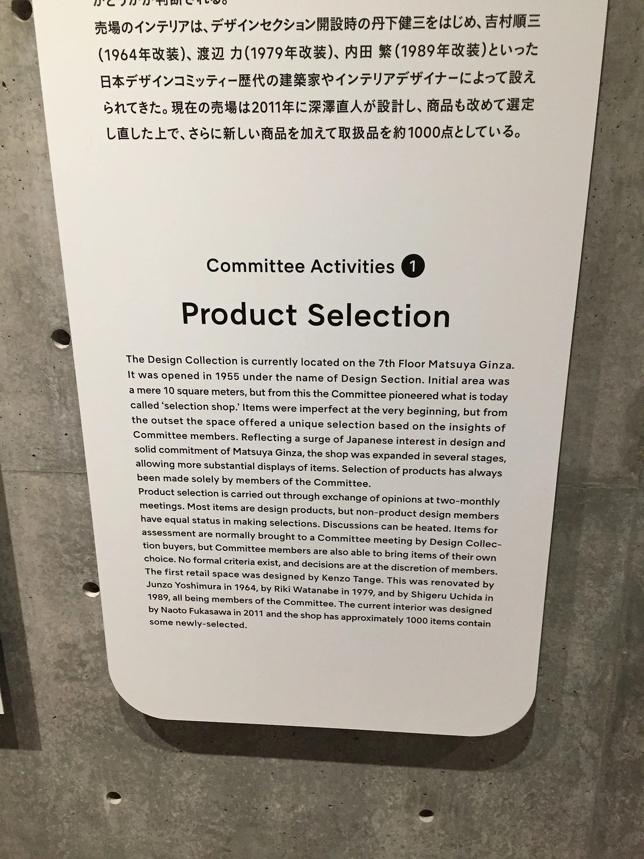 일본 디자인협회는 그들이 지향하는 '굿 디자인'을 보여주기 위해 굿 디자인 제품을 선정하고, 그렇게 선정된 제품들은 마츠야 긴자 백화점 7층에서 판매된다. 일본 디자인협회의 회원이자 존경하는 디자이너인 하라 켄야에 의해 새롭게 태어난 마츠야 긴자 백화점은 그런 일본 디자인협회를 지원한다. 백화점과 디자인 협회의 긴밀한 협업, 그것은 생각보다 멋지고 꿈같은 일인 듯했다. 마츠야 긴자 백화점은 여행 2일 차에 방문했는데, 그곳은 그들의 예리한 시선으로 정제된 굿 디자인 제품들로 가득했으며, 제품 하나하나를 경험하는 것만으로도 그들이 이야기하려는 굿 디자인이 무엇인지 이해할 수 있었다. 그곳에는 평범하게 필요한 물품들을 구매하러 온 방문객들이 많았는데, 그들은 편안한 분위기 속에서 제품들을 자유롭게 살펴보고 구매하고 있었다. 나에게는 비일상적이고 특별한, 수준 높은 공간에서 일상적인 시간을 보내고 있는 사람들이 또 한 번 부러워지는 순간이었다.
