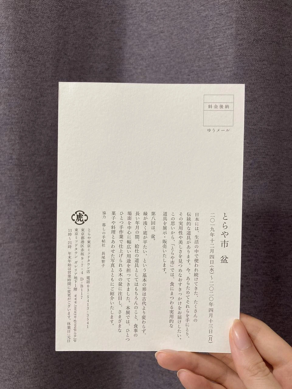 원래 계획은 롯폰기 미드타운에 방문하여 토라야 상점을 구경하고 후지 필름 스퀘어에 방문할 예정이었으나, 일정이 밀리며 후지 필름 스퀘어는 방문하지 못했다. 토라야 상점 또한 도착 시간이 늦어 내부를 여유롭게 구경하진 못했고 비치된 엽서와 인쇄물들을 챙겨 나오는 것으로 만족해야 했다. 근처 편의점에서 간단하게 식사를 하고 첫째 날 일정을 마무리했다.