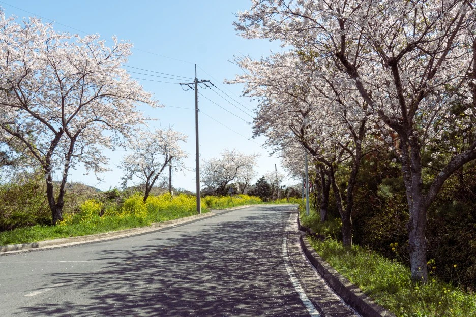 도로를 따라 걸었지만 예상치 못한 만발한 유채꽃과 벚꽃에 깜짝 놀랐다. 알고 보니 제주도 서부농업기술센터에서 심어놓은 유채꽃과 벚꽃 밭이었다. 힘들었지만 꽃들에게 앞으로 나아갈 수 있는 에너지를 받은 것 같다.