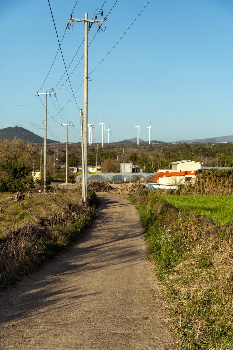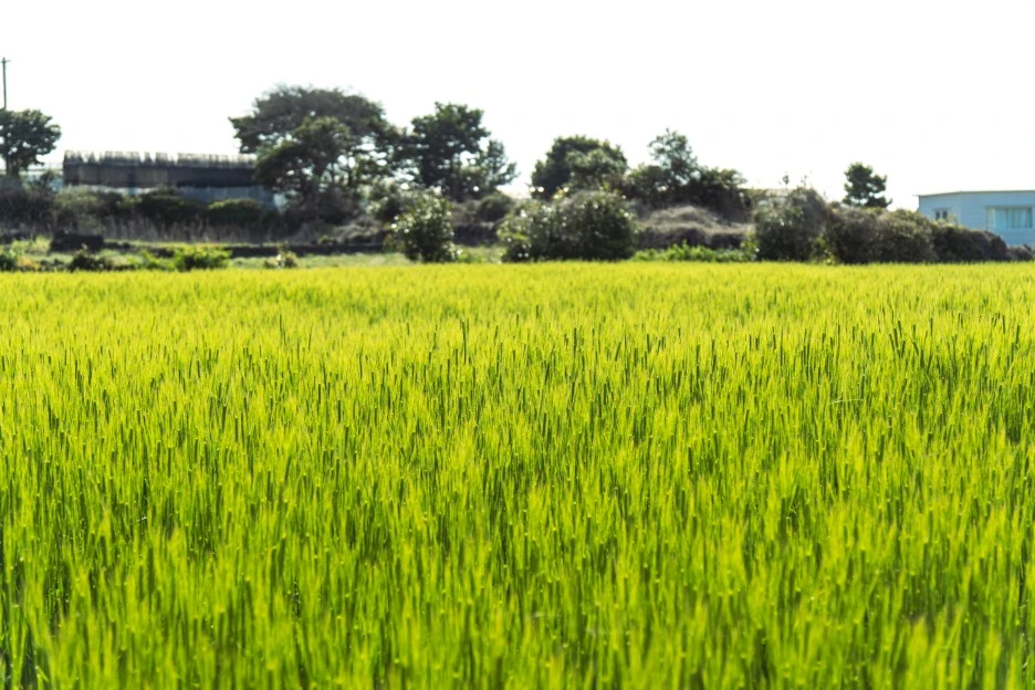 올레 14코스 종점까지 15분 남짓 한 시간.. 하나둘 보이는 주택단지와 보리밭, 중천에 떠있던 태양은 내일을 준비하러 간다. 새파랗게 자란 보리밭 위로 햇볕은 주광색에서 불그스름한 빛이 맴돌기 시작했다. 보리밭에 바람이 일렁거릴 때면 바람이 지나간 자리에 보리 위로 햇볕이 반사되어 눈부시게 아름다웠다.