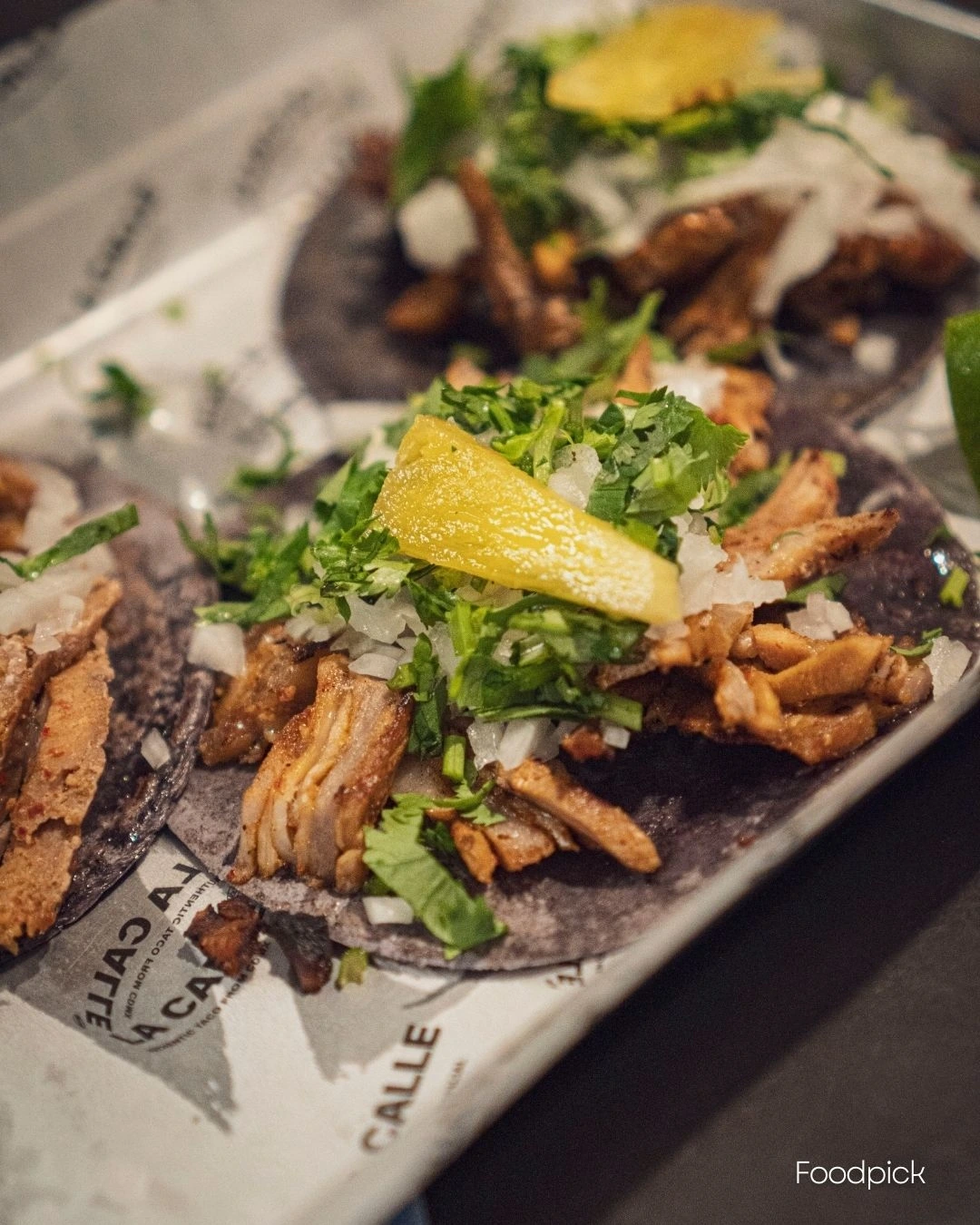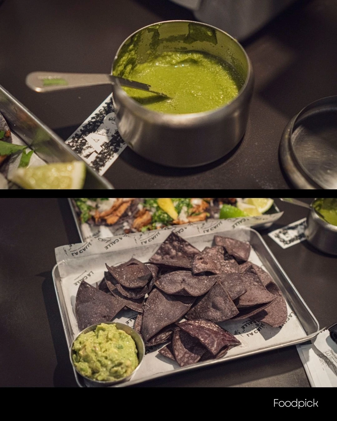 라까예 타코의 또띠아는 검정옥수수 (블루콘)를 직접 갈아 만든 또띠야입니다. 메뉴는 알파스톨 타코를 주문했습니다.
