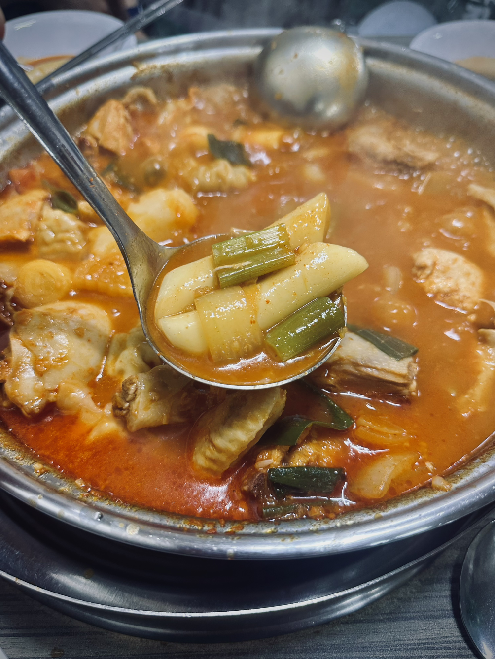 짭짤한 국물에 닭고기와 쫄깃한 떡이 만나니