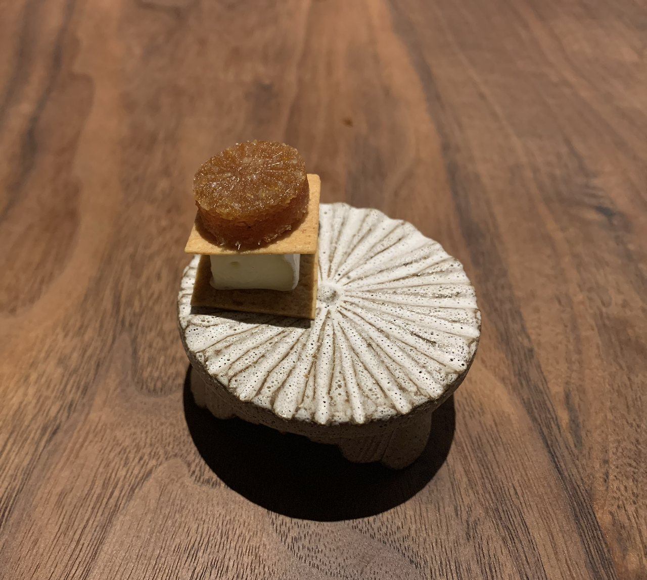 세 번째 음식도 사실 괜찮았는데 전에 먹었던 음식이 워낙 임팩트 있던지라.. 해산물을 다식으로 표현했는데 크래커와 치즈로 밸런스를 잘 맞췄다 술과 같이 먹지 않아서 좀 아쉽게 느껴졌던 음식.
