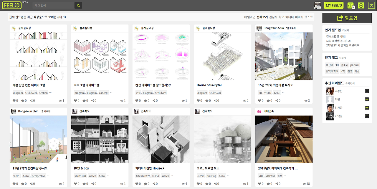 그는 디지트라는 건축 콘텐츠 연구소의 한기준 대표였다. 나보다 2학번 높았던 그는 홍익대 건축학과 소속이었고, 전역 이후 허구한 날 붙어 다녔다. 나는 항상 건축작품공유 사이트를 만들어야 한다고 주장했고 그는 내 생각을 항상 지지해 주었다. 디지트는 라이노 강의를 무료로 유튜브에 배포하면서 유명해진 커뮤니티였다. 친분 관계가 두터워지고 아키필드는 디지트에서 하는 행사를 홍보해 주었고 디지트에서도 우리를 홍보해주고 인적 네트워크를 공유하면서 서로에게 시너지를 내고자 했다. 디지트 대표와의 시너지로 금방 아키필드의 이름을 많은 건축계에 종사하는 분들께 알릴 수 있었고 반대로 디지트도 무료 강의 홍보를 하는데에 도움을 많이 얻었었다. 15년 2학기는 복학 학기였고, 학기를 마치자마자 본격적으로 작품공유 서비스인 아키필드 개발을 위해 휴학을 신청했다.
