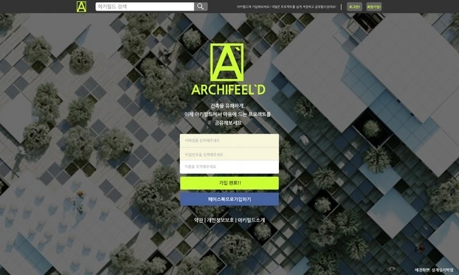 2016년 5월 론칭된 아키필드(archifeeld.net)의 랜딩페이지