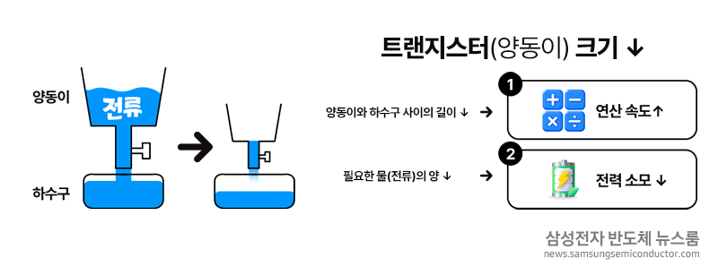 양동이에 비유한 트랜지스터 미세화. (사실 두 학기 정도는 공부해야 제대로 공부한다)
