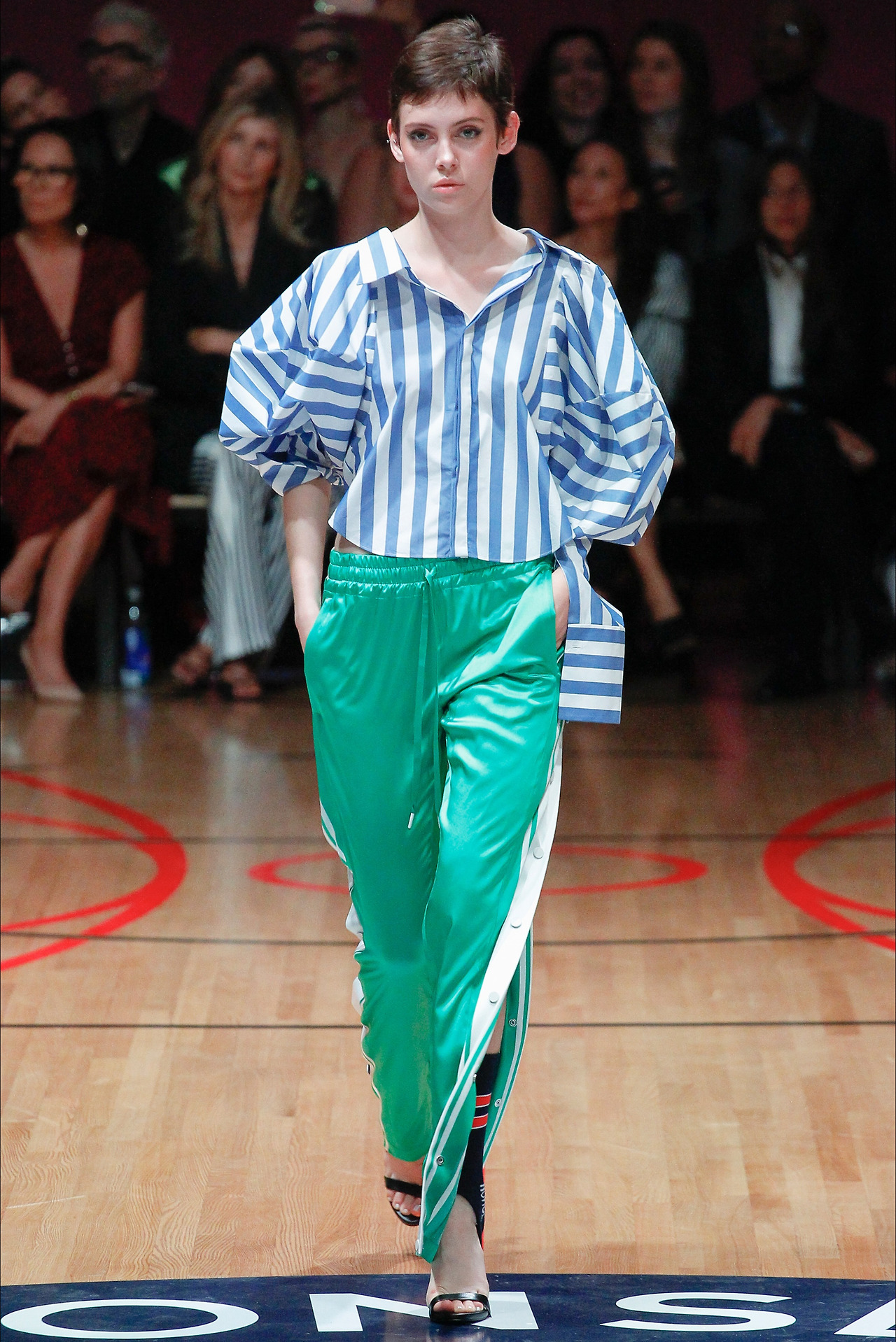 지극히 포멀한 스트라이프 셔츠를 트레이닝 팬츠와 믹스매치하는가 하면, 아노락 점퍼와 H라인 스커트를 함께 입는 등 예전이라면 고개를 갸우뚱했을 생경한 조합들이 새삼 ‘쿨’하고 멋지게 다가왔다. 여기에는 몇 시즌 전부터 떠오른 고프코어(아웃도어 의류를 일상복과 함께 믹스매치하는 스타일링 방식)의 영향도 한몫 했다. 발렌시아가의 뎀나 바잘리아가 보여줬던 패딩 점퍼와 사이하이 부츠의 믹스매치, 등산복에서 볼 법한 원색적인 컬러로 물들었던 베트멍의 패션쇼, 산악 트래킹의 복장과 장비를 패셔너블하게 재해석하며 대드 코어에 방점을 찍었던 프라다의 런웨이를 통해 스포츠웨어에 충분히 익숙해진 것. 덕분에 이번 시즌부터는 브라톱과 레깅스를 고집하지 않아도 스포티즘의 건강미를 드러내는 다양한 스타일링이 가능해졌다.