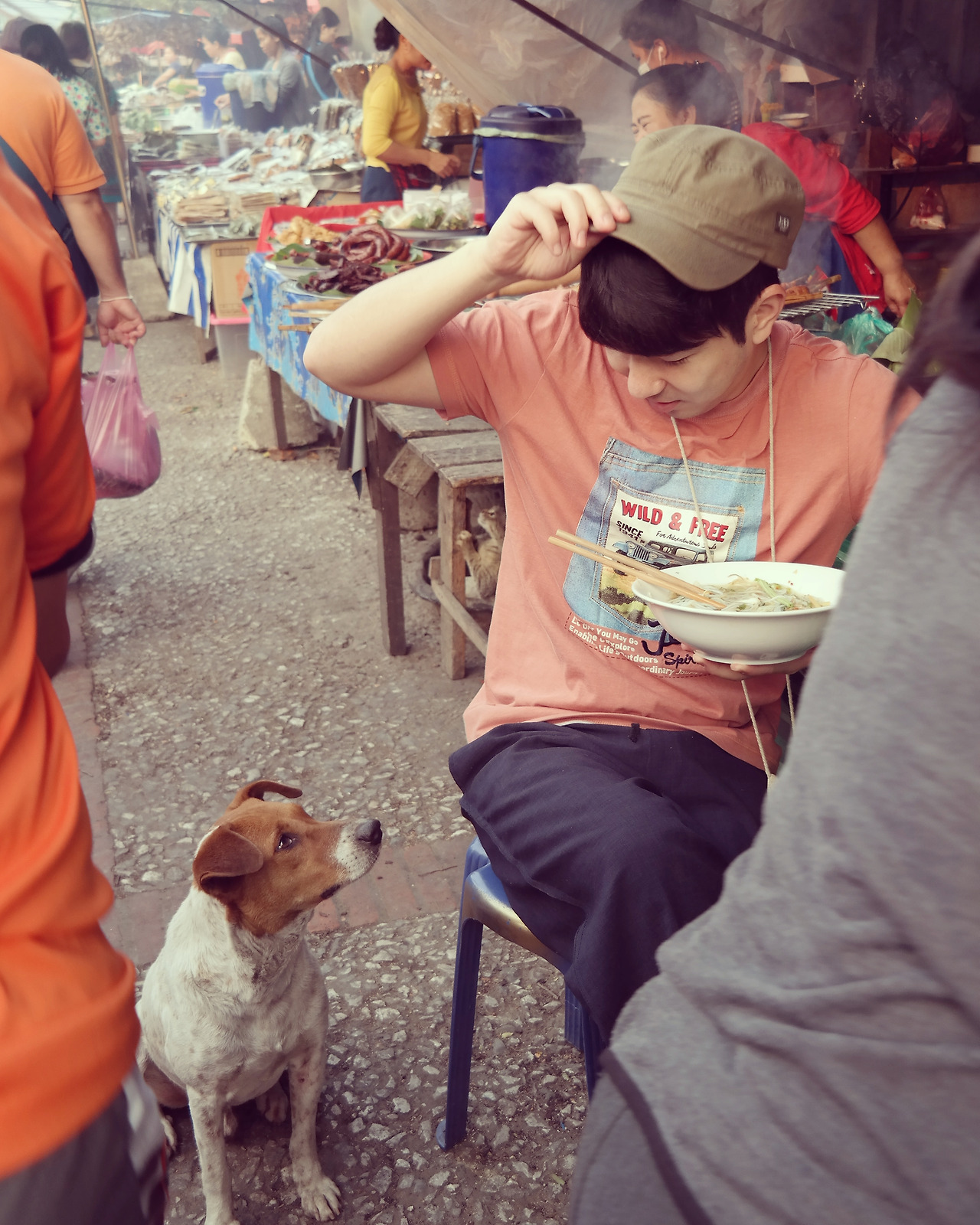 후르르짭짭 후르르짭잡 맛좋은 국수 어디한번 불러보자 유행가 유행가 신나는노래 나도한번 불러본다. 아침시장 국수한그릇 땡기러 나왔다가 괜히 기분좋아 나도모르게 섞여 나오는 노래. 돌아보니 요섹남의 원조, 오취리를 뛰어넘는 모델핏의 소유자 마이콜 선생 말씀하시길 "라면은 구공탄에 끓여야 제맛". 그냥 흘려들었던 노래가 찬송가 수준의 진리를 담고있다는 것을 이제야 딱. 김두환 형님이 우미관을 지킬때 우리네의 그 모습처럼 아침부터 국밥한그릇, 국수한그릇에서 올라오는 따뜻한 김과 왁자지껄 들려오는 보통사람들의 웃음들이 참 좋고 그 속에 함께 있는 나도 참 좋고. 편의점의 깔끔함과 백화점의 편리함은 없지만 이사람들의 따뜻한 웃음과 또 기분좋은 시끄러움으로 다닥다닥 채워진 이들의 삶이 참 부럽기도 또 행복하기도. 진짜 세상 맛있다는 국수 다먹어봤어도 이렇게 맛있고 담백한 국수는 태어나서 처음. 희한하게 설탕을 넣으면 깊은 사골의 맛이 우러나오고 마이콜's 레시피에 맞춰 구공탄에 끓인 엄청맛난 국수를 먹으러간다는걸 이놈도 아는지, 시장 들어올때부터 쫓아와 다먹을때 까지 옆에 앉아 눈웃음으로 끼부리는 이놈한테 내 아까운 고기한점 뺏겼네 제길.