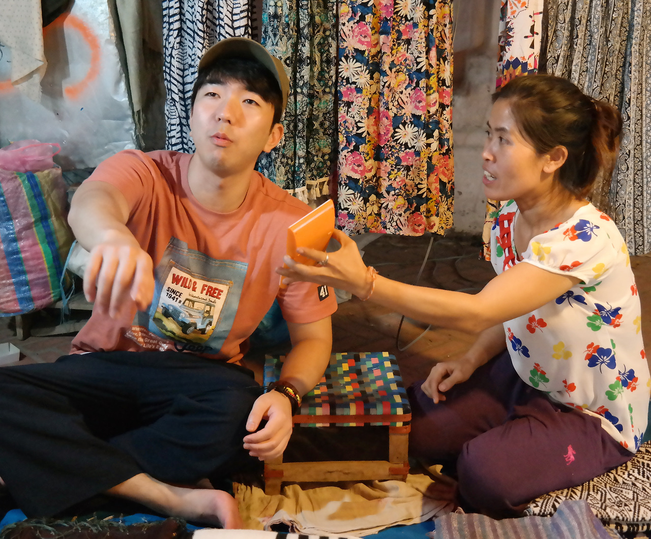 내가 다녀본 여행지중 이렇게 따뜻하게 재밋는 곳이 있었나 싶을정도로 정말 재밋었던 아니 행복했던 라오스 야시장. 너무 과한 호객행위때문에 먹고나면 더부룩한 라면같은 시장들과는 달리 먹고나면 속 뜨뜻하고 행복한 포만감에 사로잡히는 설렁탕같은 이곳. 지나가다 내꺼인듯 내꺼아닌 내꺼같은 옷하나 발견하면 일단 "타오다이(얼마에요)" 앞에앉은 아줌마 옳다구나 "만낍". 나는 어느새 "팽폿(비싸요)"이라며 깔아놓은 물건들 너머 아지매 옆에 살포시 앉는다. 이런놈은 처음이야 라는 표정으로 나를 바라보는 아줌마에게 눈웃음 한방 발사하고 넉살 좋게 "응암(너예뻐요) 미꾸암쑥(난행복합니다)"란 예상치못한 말도안되는 전개에 아줌마는 이미 우리 동네누나. 이런모습이 재밋는지 동네 장사꾼들 하나 둘씩 우리 주위로 모여들기 시작하고 지나가던 한국사람들이 날보고 빵터져서는 나에게 "얼마에요?" 난 "그냥 2만5천낍에 두개 가져가세요"하고는 우리 누나에게 윙크한번 빡! 동네 상인들 맥주한병 사들고와 손때묻은 패트병 밑둥짤라 만든컵에 얼음담아 한잔 주며 "한잔해". 시장 한가운데 라오스상인들과 둘러앉아 '더럽게'맛있는 맥주한잔 하며 수다떠는 지금. "참, 행복하다"