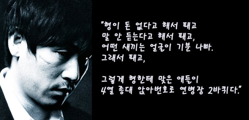 물론 이는 앞서 말했듯, 개인적인 정의관正義觀이다. 난 결코 모범적인 인간이 아니기에 이런 식의 정의관을 갖고 있다는 이야기. 강철중이라는 캐릭터가 내 마음에 쏙 들었던 이유, 그러고 보면 그것도 내가 별로 모범적인 인간이 아니기 때문일지도 모르겠다.
