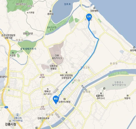 찜질방을 나와 무작정 걸었다. 송정해변은 지난번에 가봤으니, 강릉의 상징과도 같은 경포대를 가봐야지 싶었다. 지도를 보니 별로 멀지 않은 것 같아서 시내 구경도 할겸 느긋하게 걸었다. 가다가 어디 아침 먹을만한 곳이 있으면 먹어야지 하는 생각으로.
