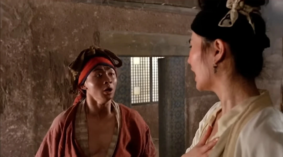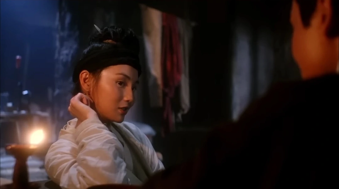 자신을 보고 "허허허" 웃는 정체 미상의 그에게, 그녀는 "뭘 봐요? 이렇게 벗고 노래하는 거 처음 봐요?"라며 큰소리쳤지만 곧 지붕에서 쏜살같이 뛰어내려, 흙먼지 범벅인 객잔의 천막천으로 몸을 잽싸게 휘감아 "흥"하며 도도하고 요염하게 모델 포즈를 취한다.