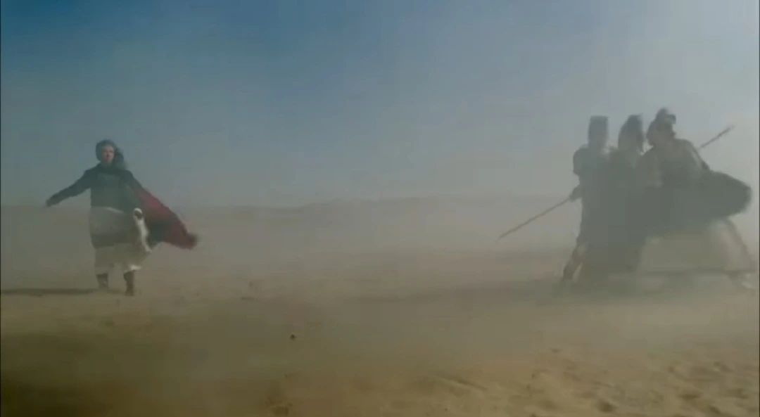 등 뒤에서 날아온 목도리를 통해 주회안 일행이 후방으로 빠져나간 것을 눈치챈 조소흠은 직접 말을 타고 사막을 달려가 그들과 대결한다.