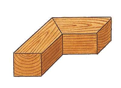 : ※|건축|나무의 면과 면을 맞추기 위해 끝부분을 45도 각도로 비스듬히 잘라 맞춘 곳.