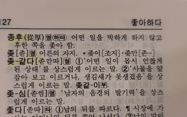 | 제니: ‘조금 더 넉넉하게 대해’ 또는 ‘조금 더 관대하게 처리해’라는 뜻이야! 징계나 처벌을 할 때 사정을 참작하여 조금 더 관대한 형으로 ‘종후하게 처리’하거나, 물건이나 노동에 대한 값을 치를 때 조금 넉넉한 가격으로 ‘종후히 치르’거나. 그런 느낌으로 보면 돼!