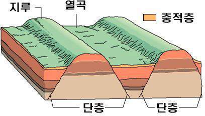 : |지리|거의 평행한 두 개 이상의 단층 절벽에 발달하는 길고 낮은 지대. 주로 육지에서 관찰된다.