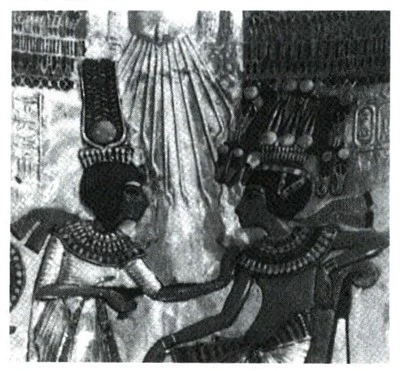 ②|복식|윗옷 앞부분에 턱받이 모양으로 덧달린 장식. 원형, 사각형, 타원형 등 여러 모양이 있다. (칼라 서클릿)