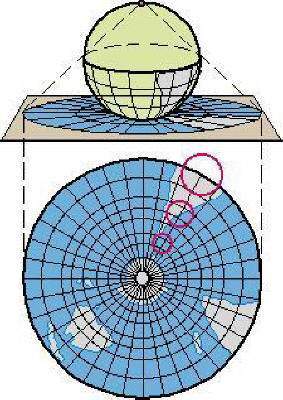 : |지리|투영면을 지구의 표면에 접하도록 하고 그 접점을 지나는 지구 지름의 반대쪽 끝에 시점을 두고 투영하는 도법. 일기도나 극지방의 항공도 등에 사용된다.