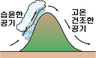 : |독일어| |지구/기상|산을 넘어서 불어 내리는 고온 건조한 공기. 흔히 산맥을 경계로 기압 차가 있을 때 일어난다. 로키산맥, 알프스산맥, 태백산맥에서 많이 볼 수 있다. (높새바람)