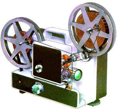 : |영상|필름에 촬영된 상을 광원과 렌즈 장치를 이용하여 영사막에 확대하여 비추는 기계.
