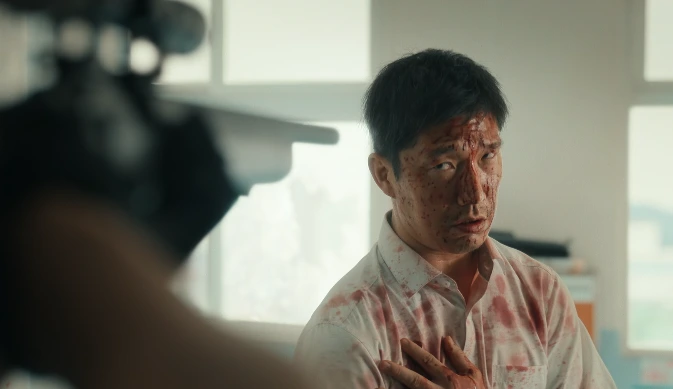 현재의 펜션주인(김윤석)도 결국 펜션을 넘기는 것이 해결책이 될 수 없음을 깨닫고 하는 수 없이 이 미친ㄴ(고민시)의 응징에 나서게 됩니다. 그러나 그때는 동료고 딸이고 이미 죽기 직전의 상처를 입은 후였고, 이 미친ㄴ은 권력과 법을 이용해 쉽게 풀려나는 뻔뻔함 마저 보입니다. 결국 이 미친ㄴ에게는 죽음이라는 매만이 유일한 약 이라는 것을 뒤늦게 깨닫게 되지요.