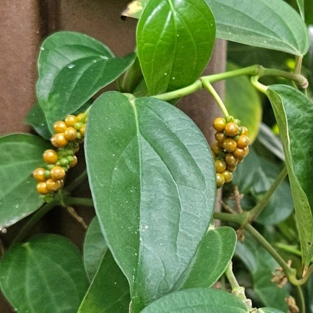 후추의 열매는 직경 5미리로 열매 안에 한 개의 씨가 있으며, 다 익으면 어두운 붉은색을 띱니다. 이것을 향신료로 만들기 위해서는 다 익기 전에 수확하여 건조하여 쓴다고 하지요.