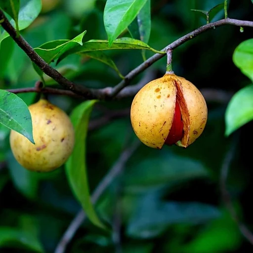 육두구(肉荳蔲)는 너트메그(nutmeg)라고도 하여 사향 냄새가 나는 호두라는 의미라고 합니다. 육두는 머리 여섯(六頭)이 아니라 고기 호두(肉荳)이었네요. 인도네시아가 원산지인 짙은 잎이 달리는 상록수로, 그 씨앗으로 만든 것이 향신료로 쓰이지요. 육두구로는 두 가지 향신료를 만드는데 씨앗 자체로 만든 것은 육두구라고 하고, 붉은빛이 도는 씨앗 덮개로 만드는 것은 메이스라고 한다네요. 독특한 매운맛과 함께 약간 달콤한 맛이 나서 특히 고기나 소시지에 어울리지요.