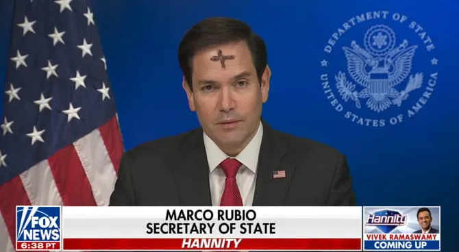 트럼프의 측근들은 이러한 기우를 더욱 확신으로 바꾸어 주었습니다. 일론 머스크는 권력의 마약에 취한 듯 나치식 경례를 보여줘 논란을 일으켰지요. 국무부 장관인 마코 루비오는 머리에 십자가를 그리고 뉴스 인터뷰에 나오는 기행을 보였습니다. 그것을 보니 십자가는 옆으로 무엇을 덧 붙이냐에 따라 나치 문양이 되기도 한다는 점에서 소름이 돋았지요. 십자군과 나치는 목적적 유사점이 많거든요.